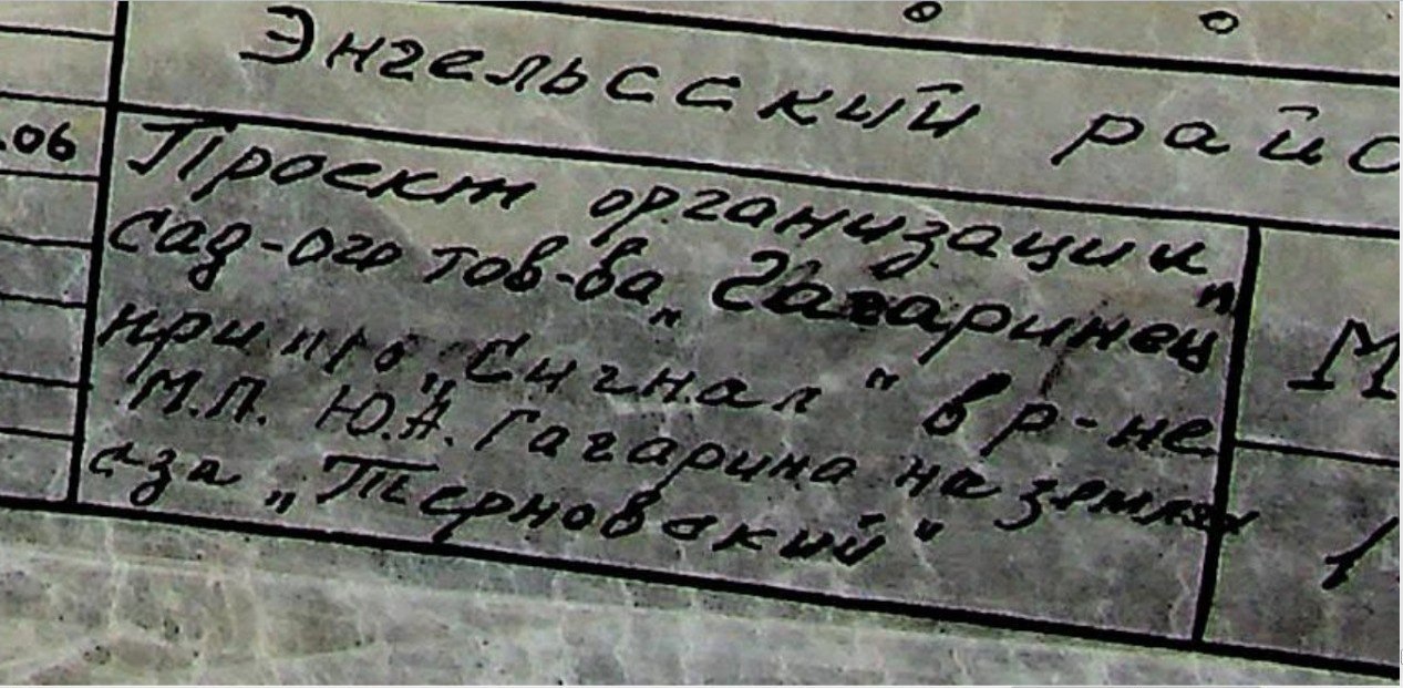 Изучив документы, забегая вперёд, я обнаружил подлог: план товарищества «Сигнал» был с грубо исправленным названием на «Гагаринец» (это видно при увеличении).
