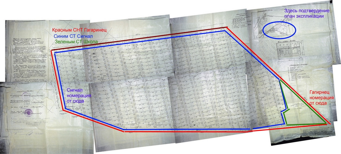 Получившаяся план-схема наглядно показывает разницу между планами СТ «Сигнал» и СНТ «Гагаринец». И ещё раз подтверждает, что для того чтобы выдать акты приватизации, у работников земельного комитета (кадастра) на 1993 год имелся именно такой план.